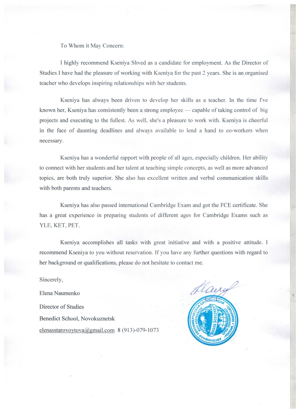 квалификации. Есть языковой сертификат, подтверждающий уровень владения английским